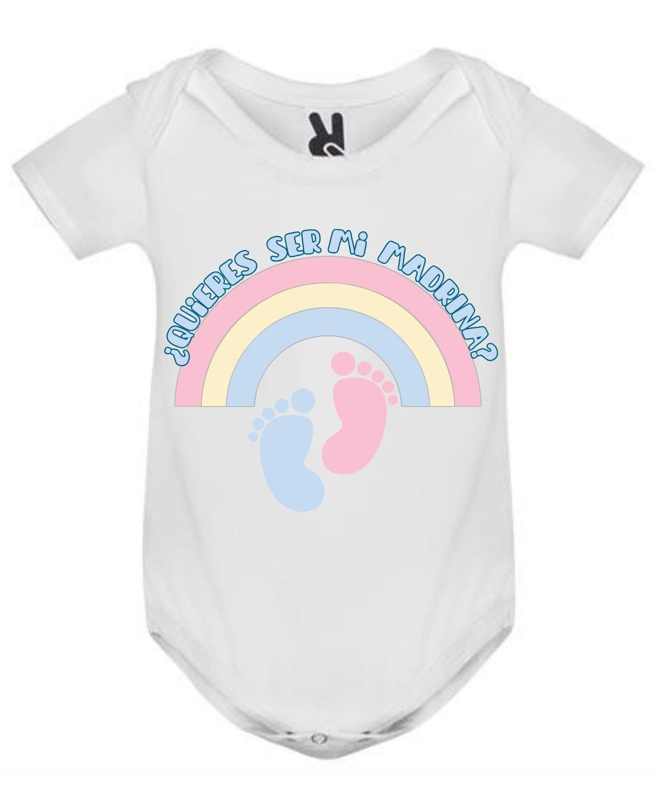 Body de bebé con manga corta de punto liso con cuello redondo cierre con corchetes en la entrepierna. Hombros de apertura cruzada.